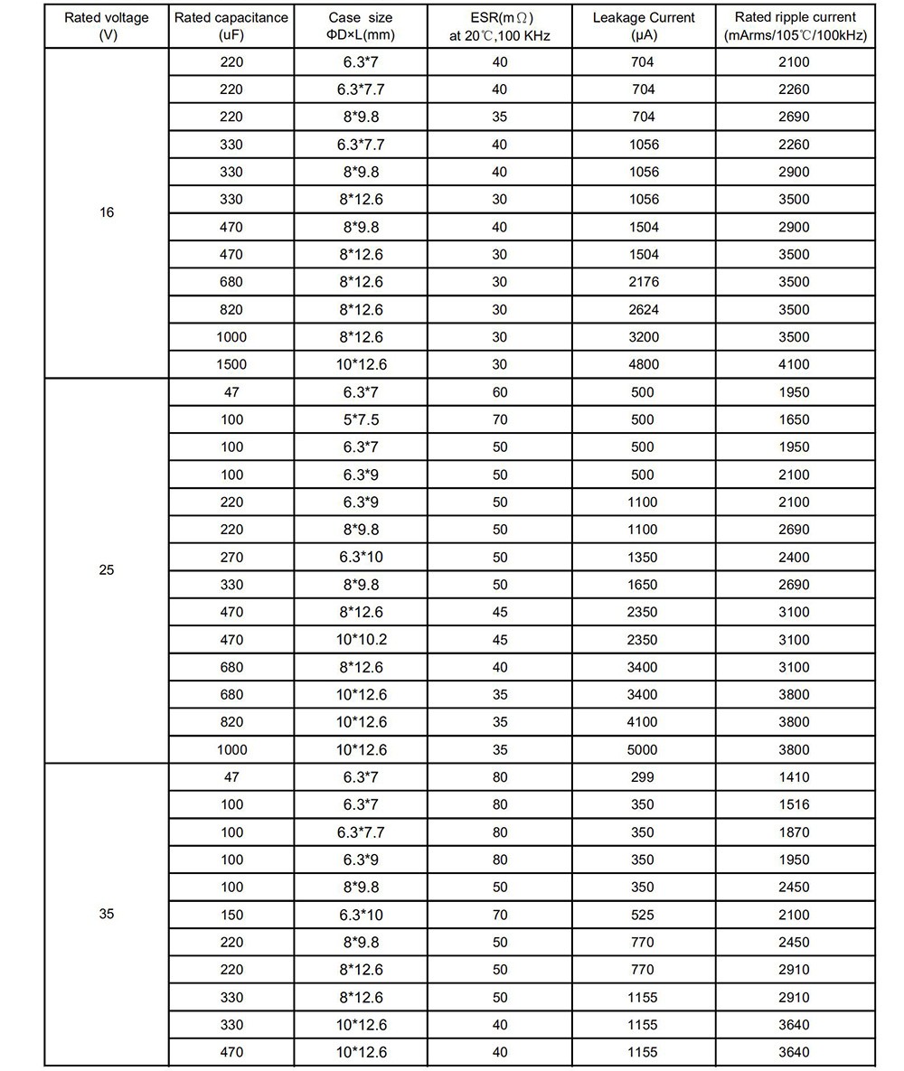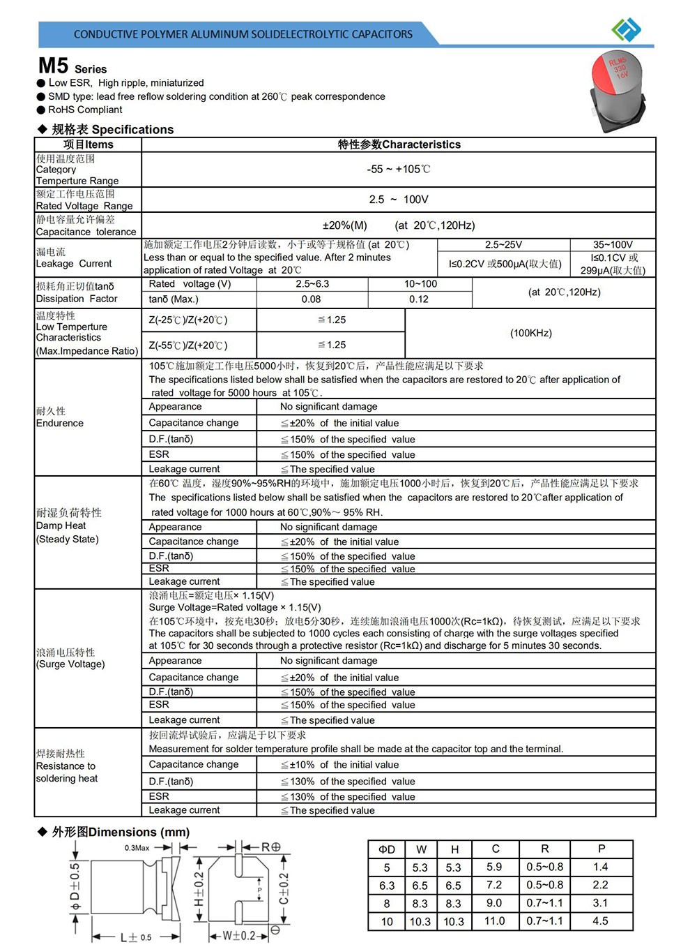 ● Low ESR, High ripple, miniaturized ● SMD type: lead free reflow soldering condition at 260℃ peak correspondence ● RoHS Compliant