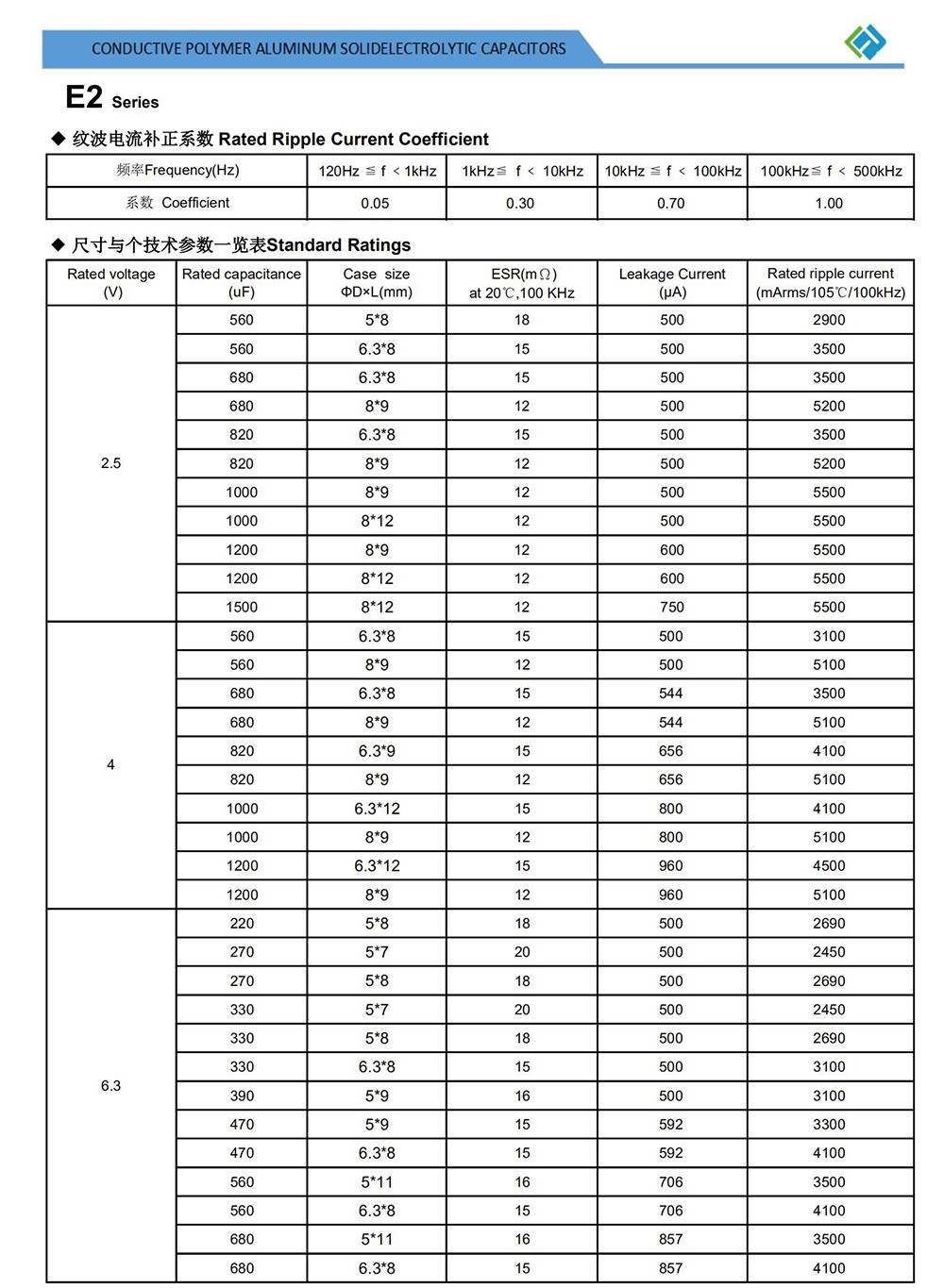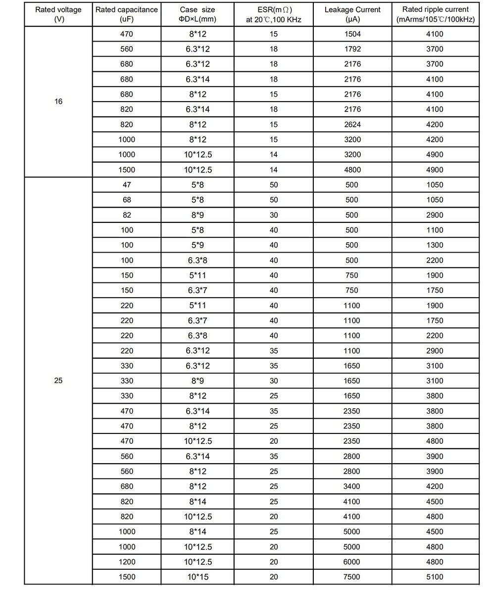 ● Low ESR, high ripple current ● Load life of 2000 hours at 105℃ ● RoHS Compliant
